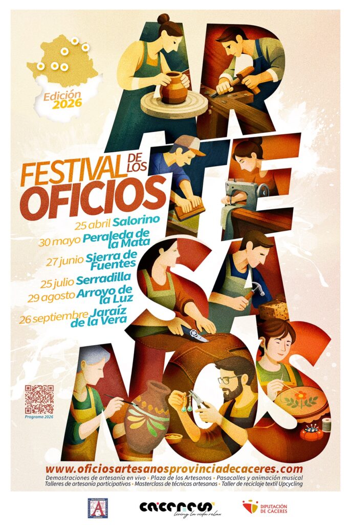 Un año más, la Diputación de Cáceres organiza, en colaboración con la Asociación Extremeña para la Promoción de la Artesanía y en el marco del convenio que ambas entidades mantienen desde 2004, una nueva edición del Festival de Oficios Artesanos de la Provincia de Cáceres, que alcanza ya su quinta convocatoria.