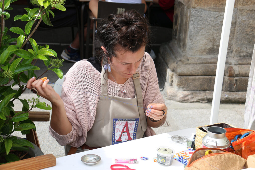 Lamia Creativa es una pequeña empresa artesana, dedicada a la realización de productos a partir de materiales reciclados: complementos y accesorios sostenibles, únicos y comprometidos con el medio ambiente. Por un lado, trabajan con vidrio reciclado, procedente de ventanas y botellas a las que se les da una segunda vida. Con este vidrio crean accesorios y complementos originales, únicos y sostenibles: pendientes, pulseras, colgantes, anillos, jaboneras, portavelas, centros de mesa, etc. Además, con los retales sobrantes de trabajos más grandes realizan pequeños trabajos de mosaico, como colgantes, llaveros o cajas decorativas. Por otro lado, trabajan con telas recicladas y lana natural. Convierten telas y ropas en desuso en accesorios, complementos y muñecas de trapo sostenibles. Accesorios y complementos como pendientes, monederos, llaveros o bolsos. Las muñecas de trapo, además de estar cosidas y pintadas a mano, están rellenas de lana de oveja natural. Por último, también trabajan con corcho natural, material sostenible y abundante en nuestra querida Extremadura. Realizan desde pendientes hasta riñoneras, carteras o bolsos en corcho. Todo hecho a mano en Extremadura, con mucho mimo y cariño.